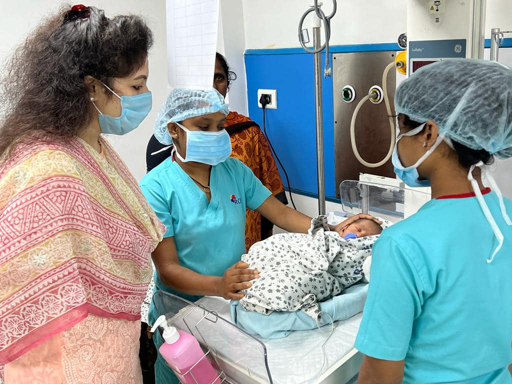 This 4day baby received treatment for Severe Aortic Stenosis, which included ventilation care for a day. Smt.Priyanka Dharmapuri visited the baby being discharged today and spoke to his father. She also interacted with doctors on duty about the baby’s recovery and further treatment, if any.